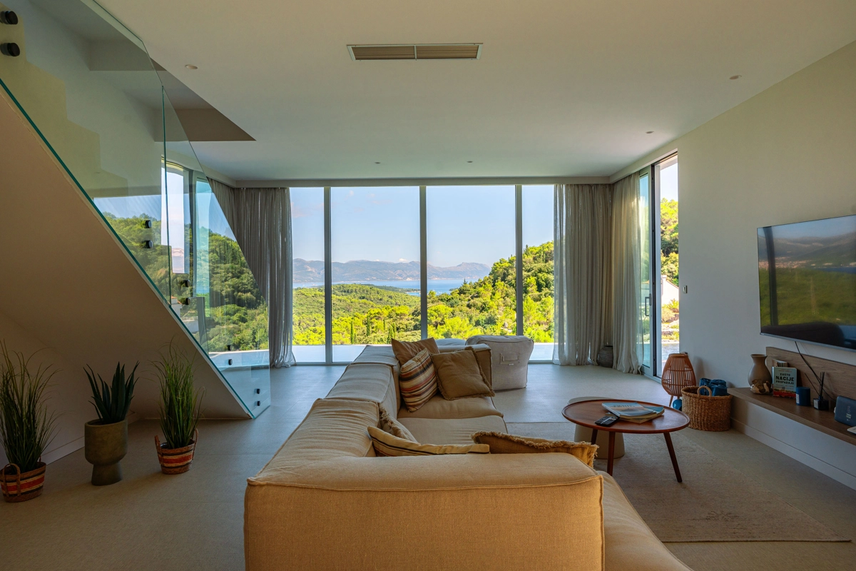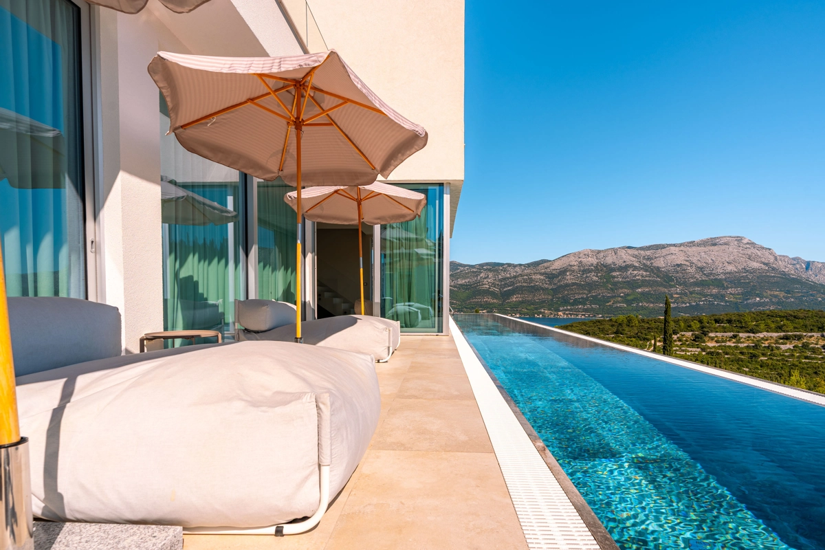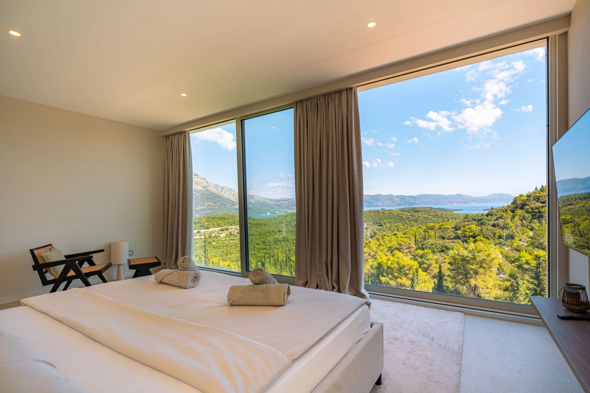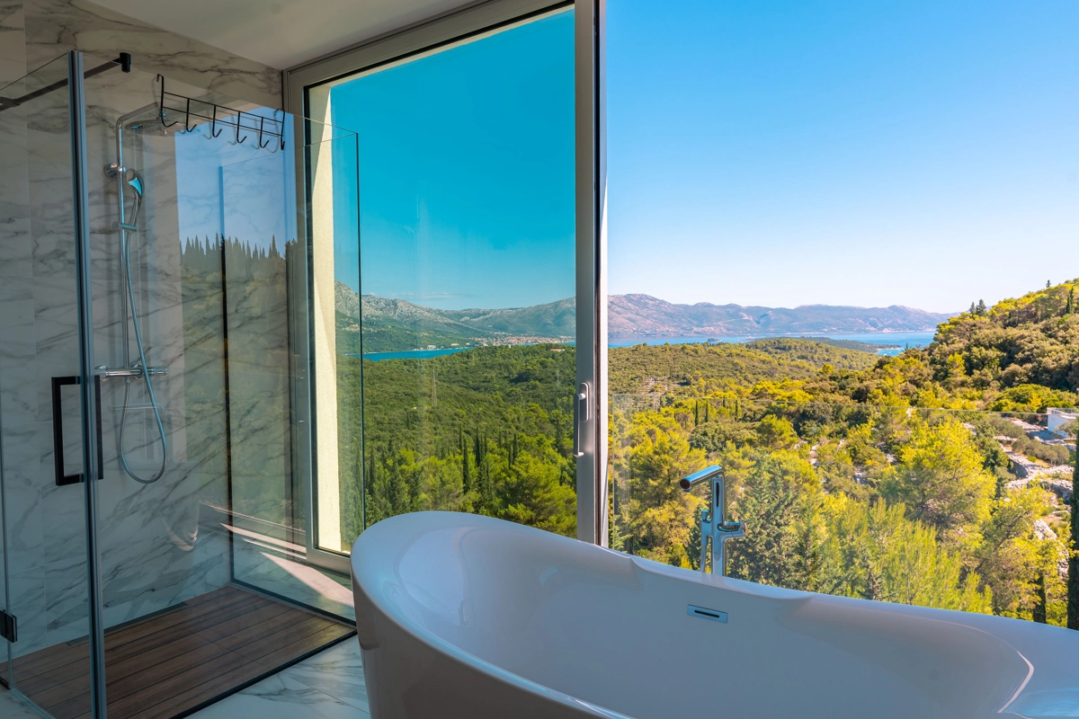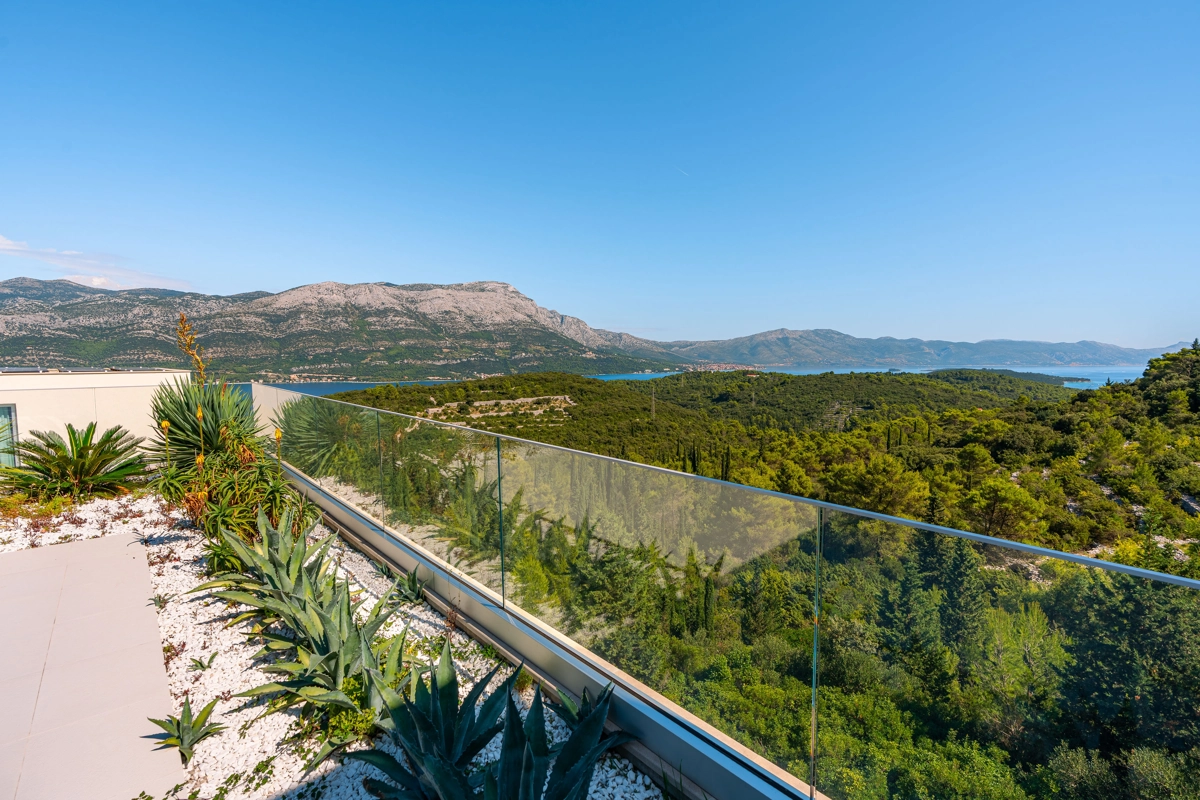 panoramski pogled iz gotovo svih prostorija vila, vrtova i terasa na stoljetnu borovu šumu, Pelješac i Korčulanski kanal