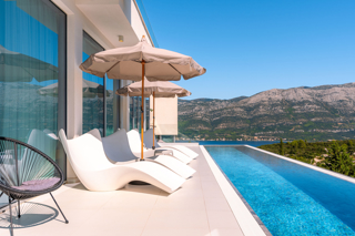 panoramski pogled iz gotovo svih prostorija vila, vrtova i terasa na stoljetnu borovu šumu, Pelješac i Korčulanski kanal